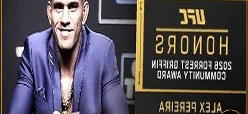 Компания UFC объявила, что бывший чемпион UFC в среднем и полутяжелом весе Алекс Перейра стал лауреатом Премии Форреста Гриффина за общественную деятельность в 2026 году. Эта награда, учрежденная в честь члена Зала Славы UFC Форреста Гриффина, вручается бойцам UFC за выдающуюся волонтерскую и благотворительную работу, а также за значительное положительное влияние их деятельности на общество.
