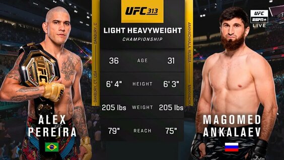 На турнире UFC 313, который пройдет на T-Mobile Arena в Лас-Вегасе, штат Невада, США, дагестанец сразится с «Поатаном» за титул в полутяжелом весе.