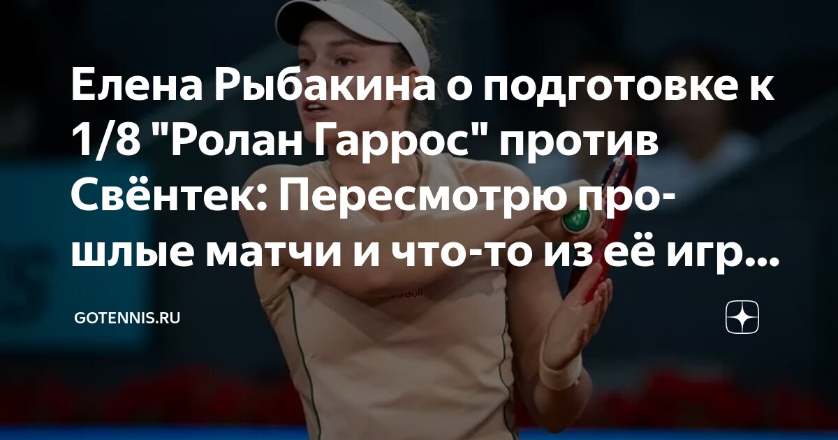 Говоря о подготовке к матчу против Свёнтек, Елена подчеркнула, что важнее ориентироваться на собственную игру и больше атаковать. Она планирует пересмотреть их прошлые матчи и постараться оценить некоторые аспекты игры Иги на текущем турнире.