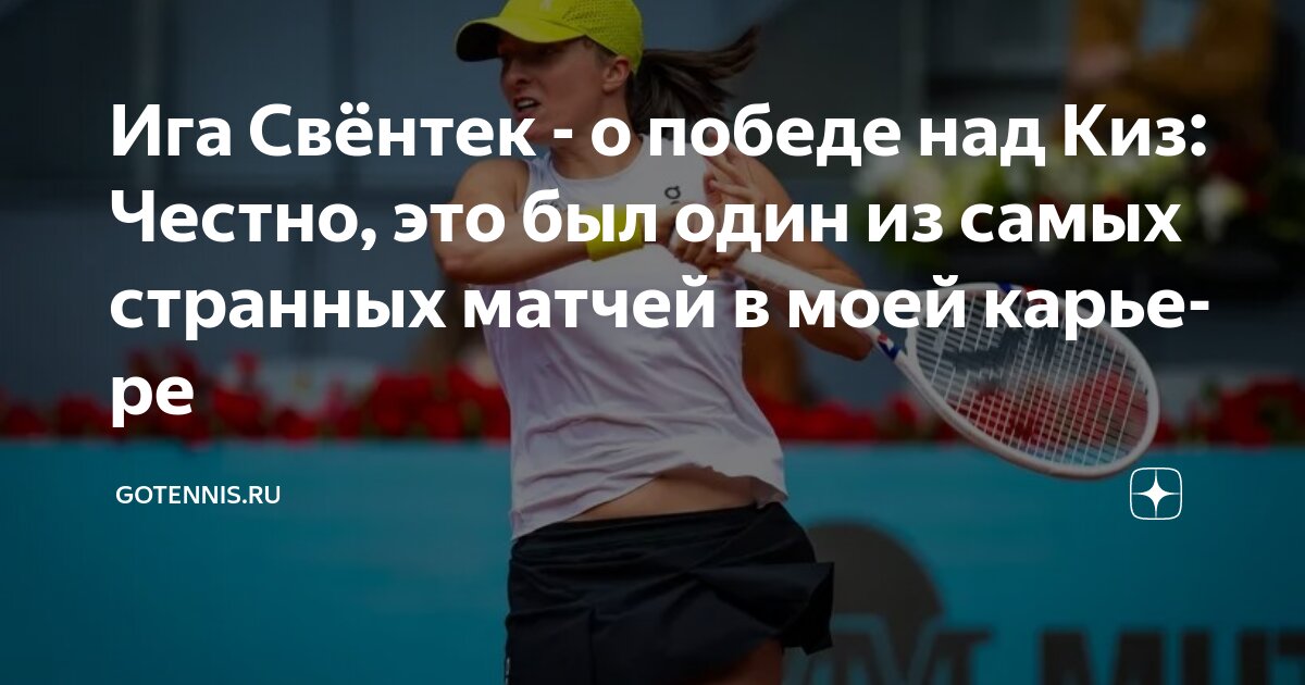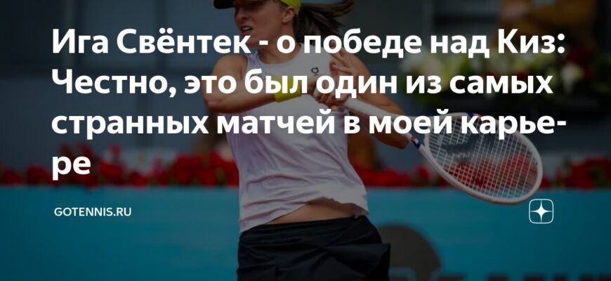 Вторая ракетка мира, польская теннисистка Ига Свёнтек, поделилась своими впечатлениями после четвертьфинального матча на турнире в Мадриде, в котором она одержала победу над американкой Мэдисон Киз со счетом 0/6, 6/3, 6/2.