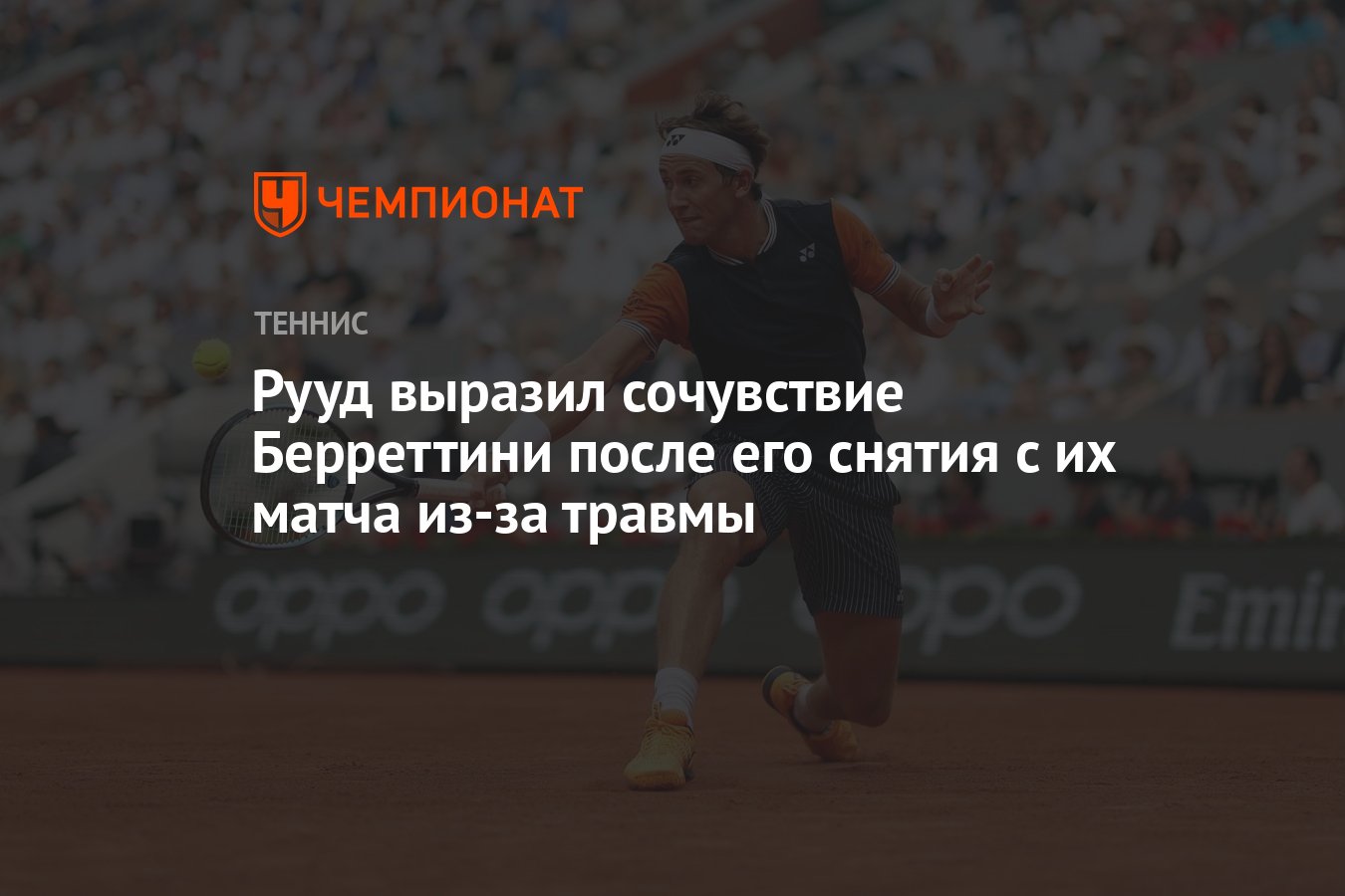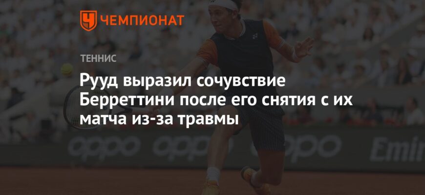 Итальянский теннисист Маттео Берреттини, занимающий 30-ю строчку мирового рейтинга, вынужден был досрочно завершить своё выступление на турнире серии «Мастерс» в Риме. В матче четвёртого круга против седьмой ракетки мира, норвежца Каспера Рууда, Берреттини отказался от продолжения борьбы.