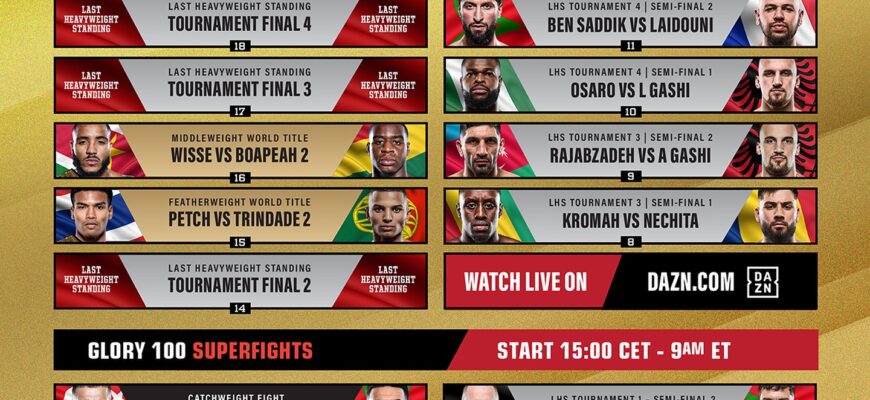 Сегодня, [Текущая Дата], в Роттердаме состоится захватывающий турнир по кикбоксингу GLORY 104.